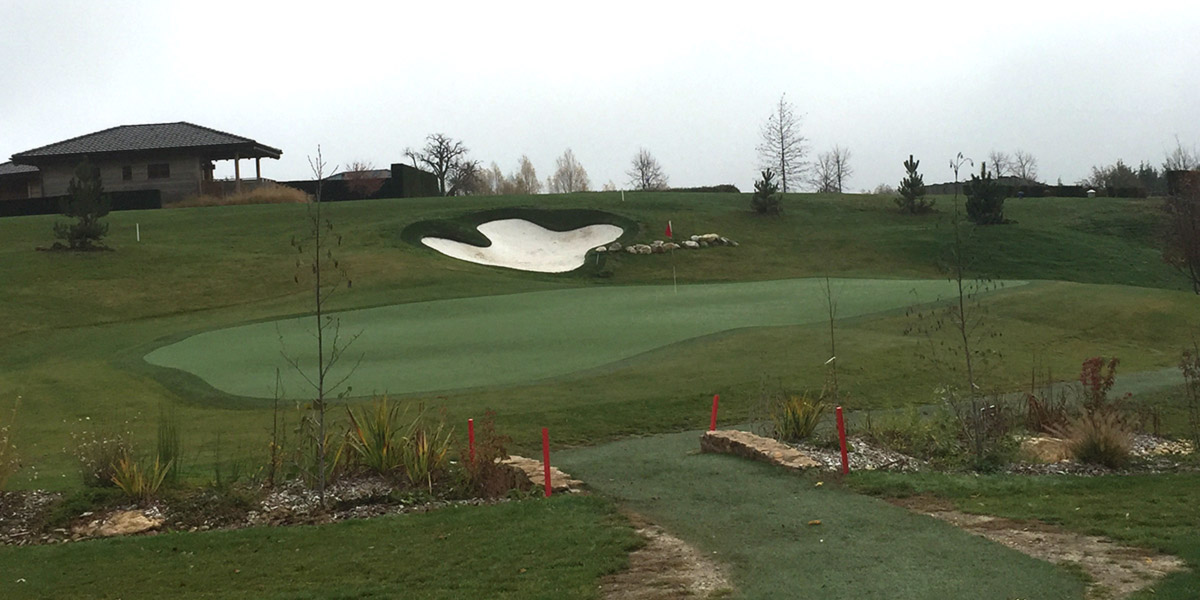 - Enclosed bunker zone in synthetic zone allowing maintenance team ease in cutting rough or fairway zones around bunker zone easily and efficiently